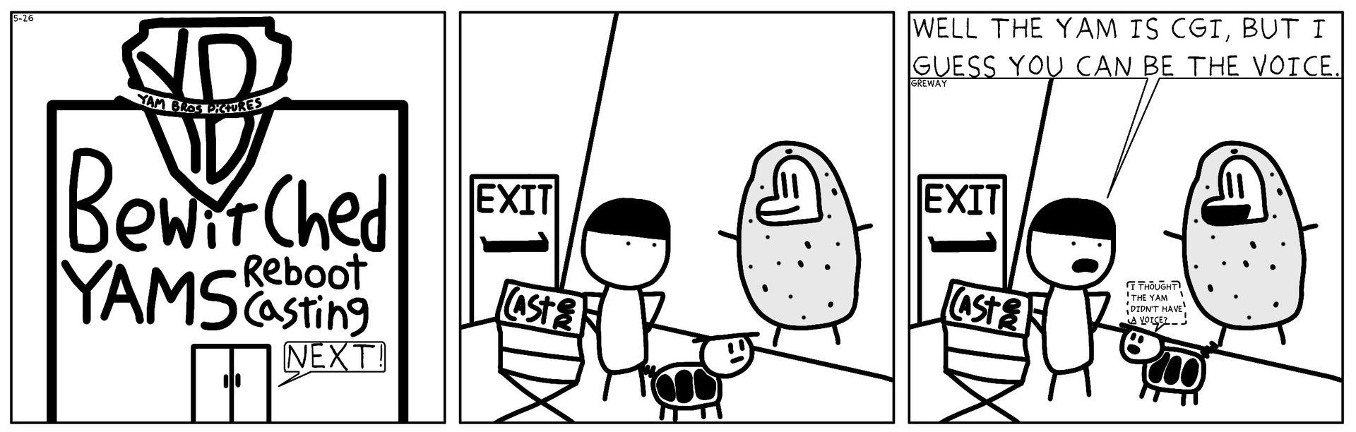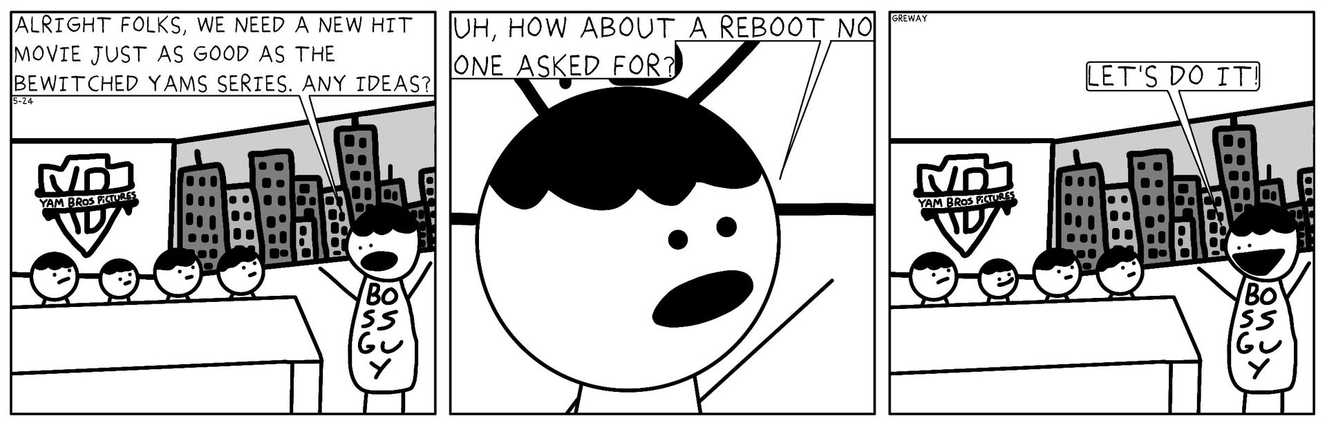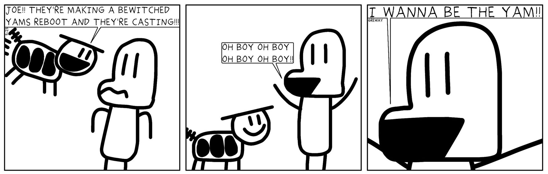 'Bewitched Yams' is a running gag in Bob The Cow comics. Bob sometimes references wanting a DVD of 'Bewitched Yams'. The film series has hundreds of parts
