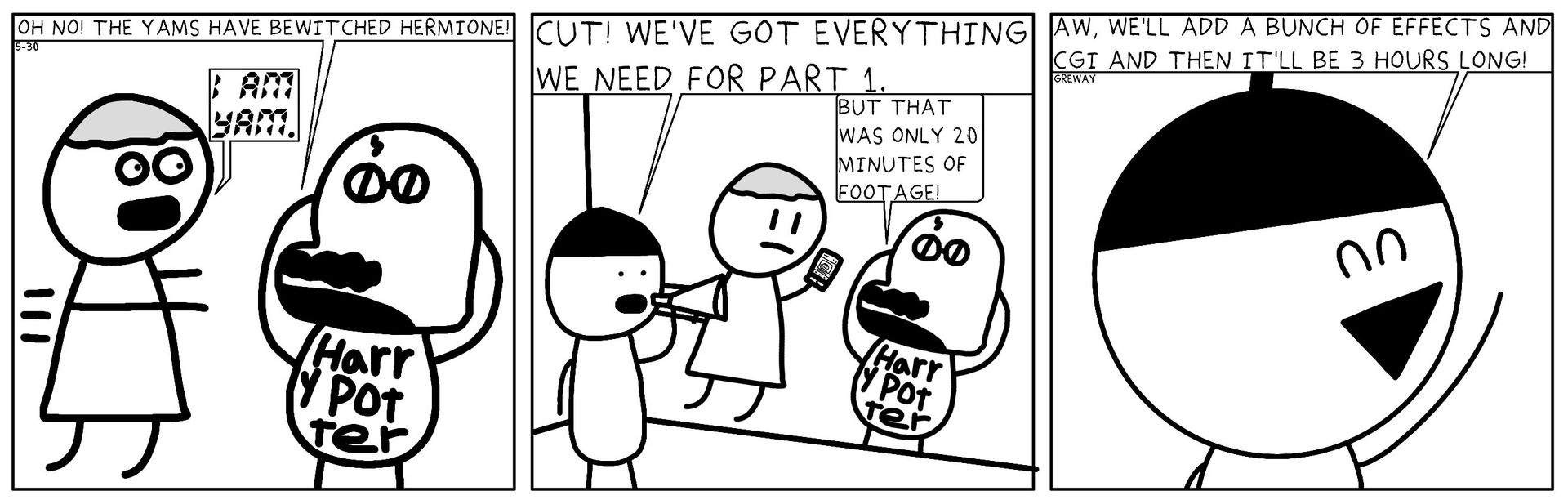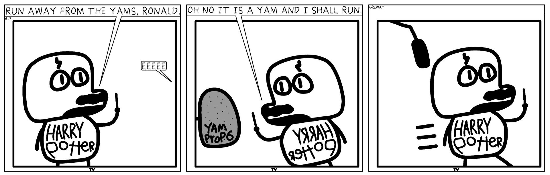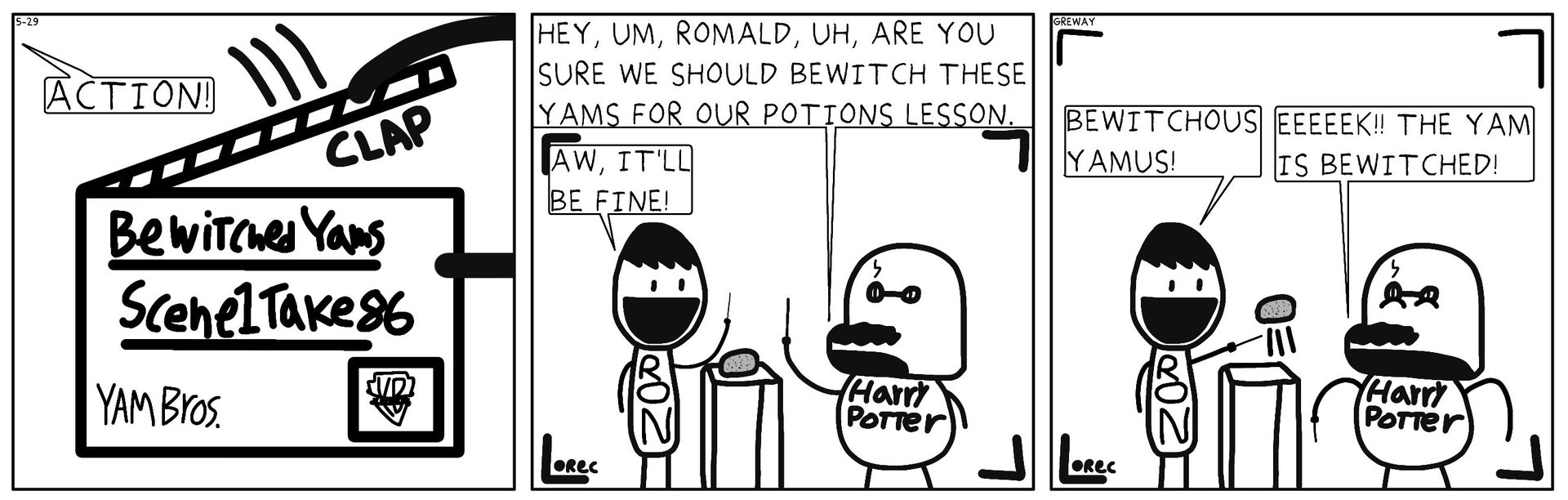 Bewitched Yams, more formally known as 'Harry Potter and the Bewitched Yams' references the Harry Potter books and movies by J.K. Rowling.