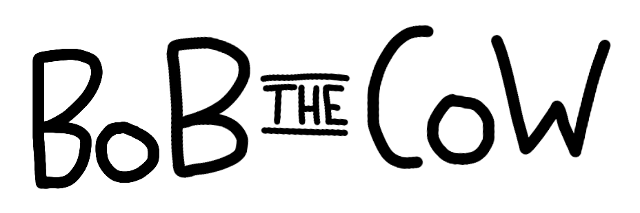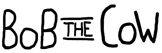 Bob The Cow has evolved a lot since the very first comics in 2017. As the comics evolved, so has the logo. The first widely used logo appeared with the advent of digital distribution in late 2020, and has continued to change until the latest version, created in 2024.
