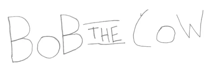 This is the first widely used Bob The Cow logo, from 2020-2022. It was drawn on pencil and scanned digitally. It carries the same style to several used before it, with the middle word between two lines, but this is the first standardized version ever used and the very first used digitally.
